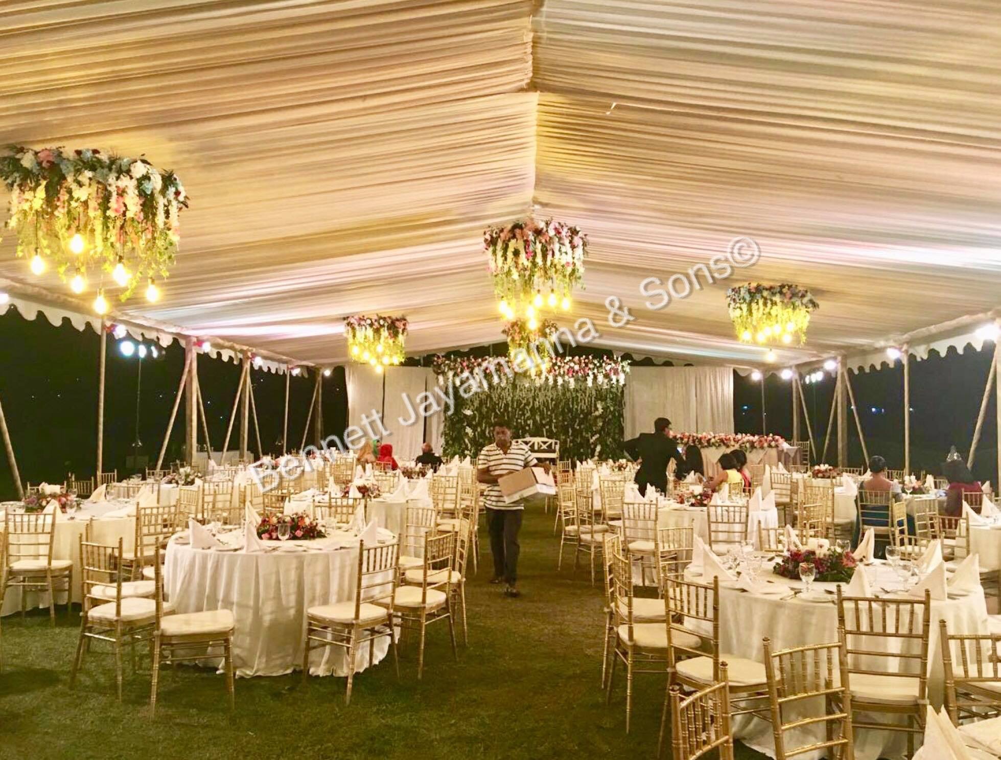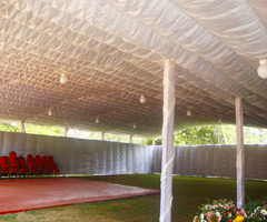 Our services consists of complete wedding planner with supply of Marquee Tents, outdoor parabolic sheds, party tents, canopy sheds and supply of banquet chairs, Tiffany Chairs, tables, stages, cutlery platforms etc.