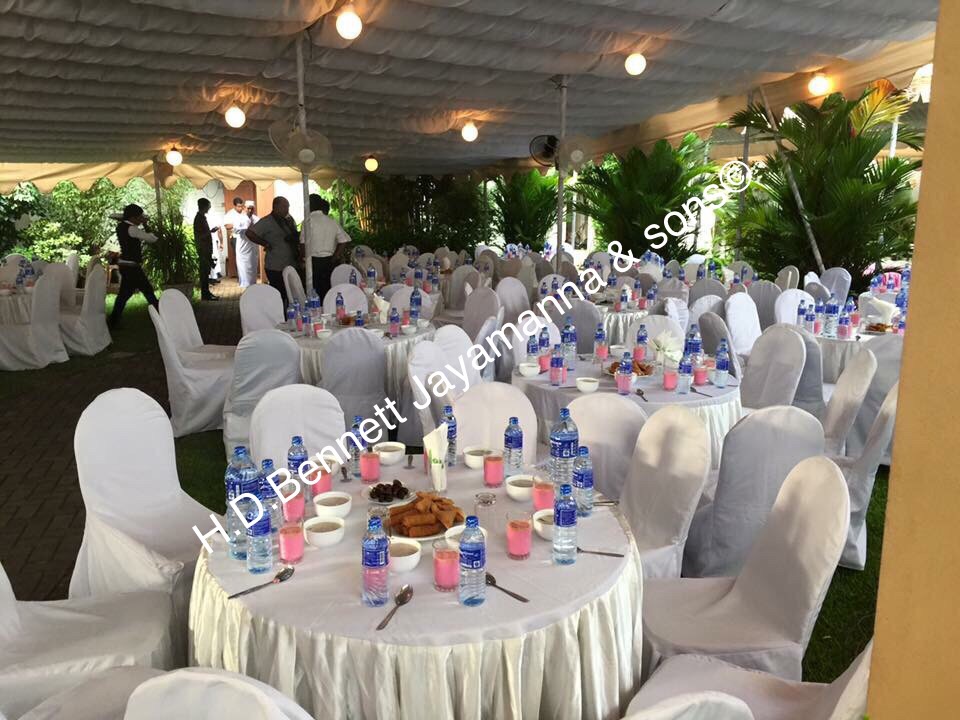 The most experienced service provider in the field of Alms giving table arrangement with table layout, table covers fleeted skirting and banquet chairs with white covers. We present 24 hour service through emergency hot line of 0773232037.