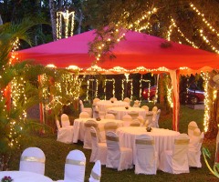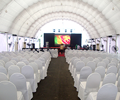 Parabolic round tents and stages with water proof flex cloth in different sizes are available too.